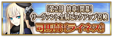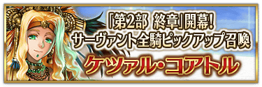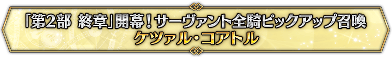 なお、本召喚は『「第2部 終章」開幕! サーヴァント全騎ピックアップ召喚』ピックアップスケジュールに記載された日程で召喚内容が切り替わりますが、開催期間内において複数回おこなわれる同名ピックアップ召喚は召喚回数がリセットされずに引き継がれます。