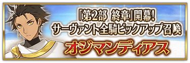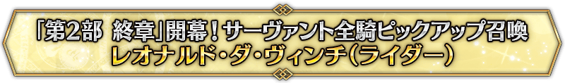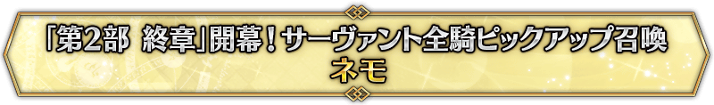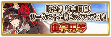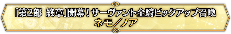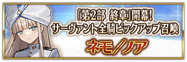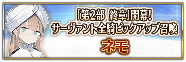 ※『「第2部 終章」開幕! 英霊極点ピックアップ召喚』では、該当サーヴァントはピックアップ対象ではございません。