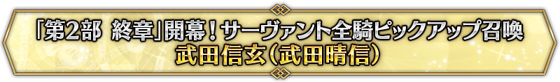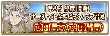※「★5(SSR)武田信玄(武田晴信)」は、「★5(SSR)武田晴信」を霊基再臨第3段階にすることで名称が「★5(SSR)武田信玄」に変化します。