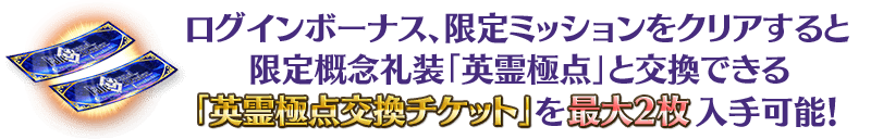 下記の期間中にログインすると、「英霊極点交換チケット」が1枚獲得できます。