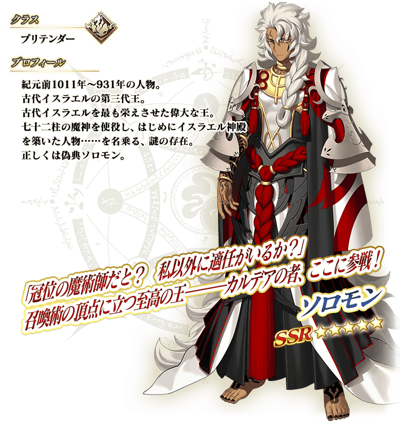 さらに、「第2部 終章_序」後半をクリアすることで「★5(SSR)ソロモン」が加入します。