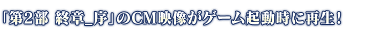 期間中、「第2部 終章_序」のCM映像はマイルームのマテリアル(ストーリー)に登録され、期間終了後に削除されます。