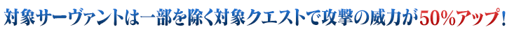 【期間限定】対象サーヴァントは一部を除く対象クエストで攻撃の威力が50%アップ!