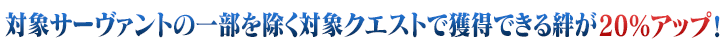【期間限定】対象サーヴァントの一部を除く対象クエストで獲得できる絆が20%アップ!