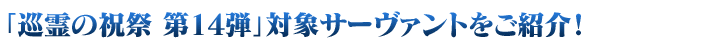 【「巡霊の祝祭 第14弾」関連サーヴァント強化のチャンス】