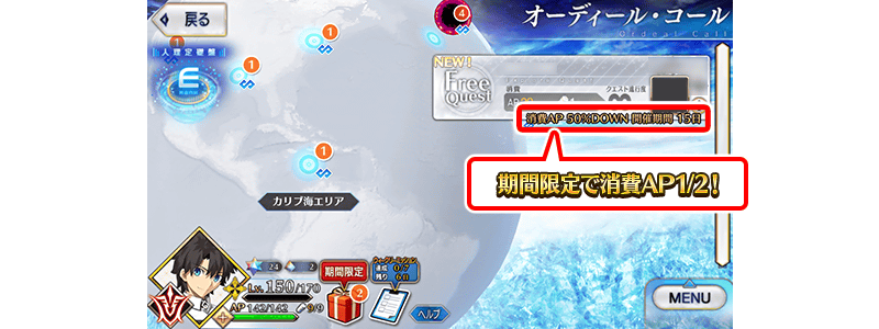 限定 すべての白紙化地球上のフリークエストの消費AP1/2!