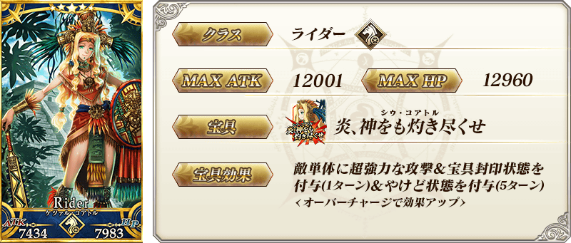 ※上記の「★5(SSR)ケツァル・コアトル」のセイントグラフは霊基再臨第2段階のものです。
