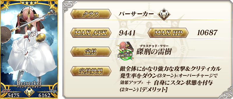 ※上記の「★4(SR)フランケンシュタイン(バーサーカー)」のセイントグラフは霊基再臨第2段階のものです。