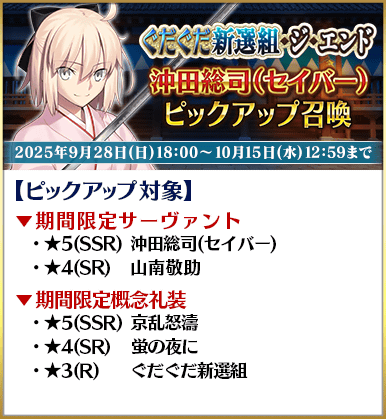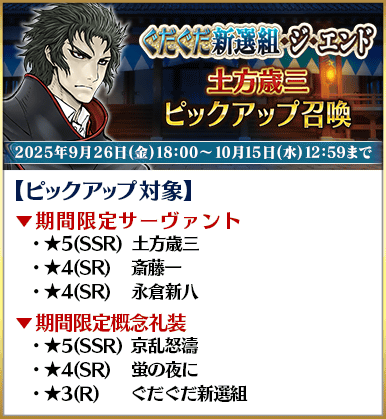 ◆「ぐだぐだ新選組・ジ・エンドピックアップ2召喚」期間◆