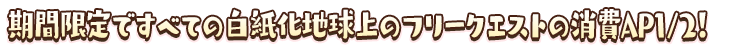 下記の期間中、白紙化地球上におけるフリークエストの消費APが1/2になります!