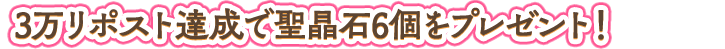 1月17日(土)に投稿する対象ポスト2件のリポスト合計数が、3万リポストを達成すると、聖晶石6個をプレゼントいたします!