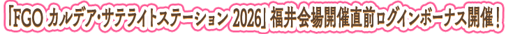 下記の期間中、「FGO カルデア・サテライトステーション 2026」福井会場開催を記念して、キャンペーン限定概念礼装がもらえる「FGO カルデア・サテライトステーション 2026」福井会場開催直前ログインボーナスを実施いたします!