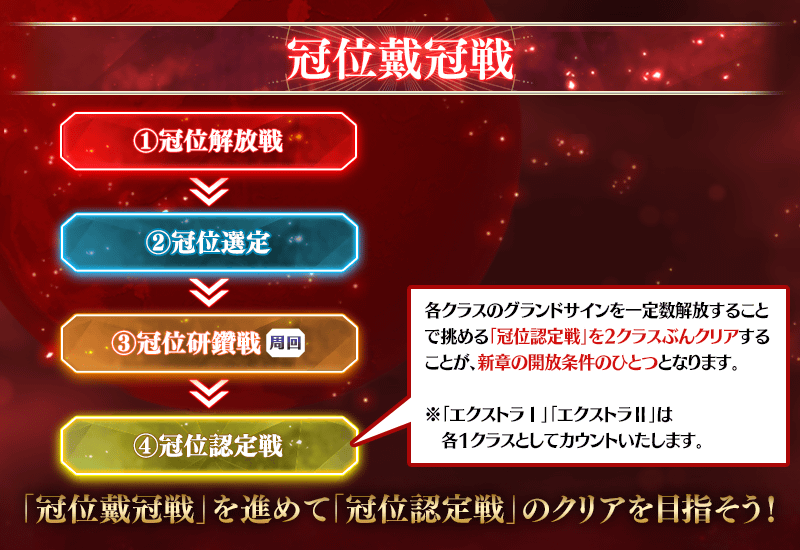新章の開放条件のひとつは「2クラスの冠位認定戦のクリア」となります。