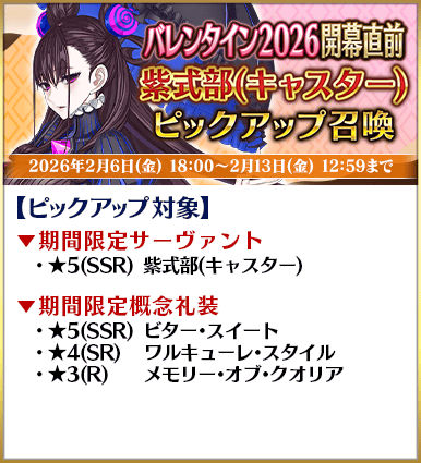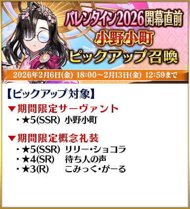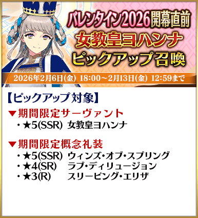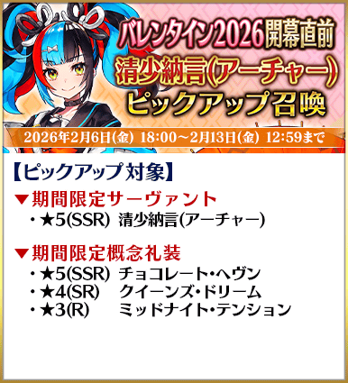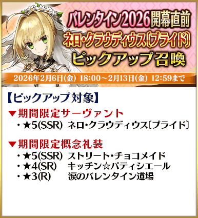 ◆「バレンタイン2026開幕直前ピックアップ召喚」期間◆
