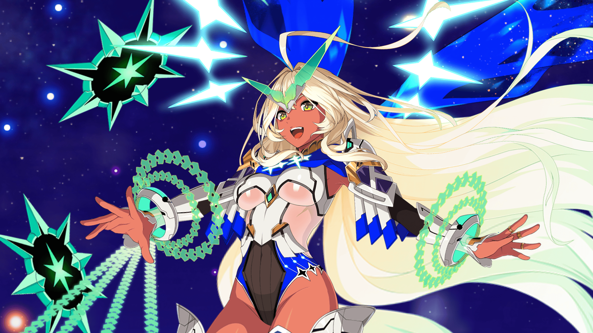 ◆最大解放時効果◆ 自身に毎ターンHP100回復状態を付与&被ダメージを100カットする状態を付与&毎ターンスター2個獲得状態を付与 |