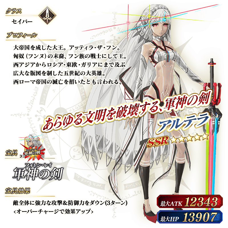 ※上記の「★5(SSR)アルテラ」のイラストは霊基再臨第2段階のものです。