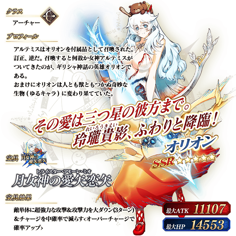 ※上記の「★5(SSR)オリオン」のイラストは霊基再臨第2段階のものです。