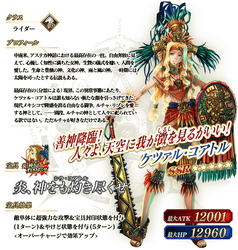 ※上記の「★5(SSR)ケツァル・コアトル」のイラストは霊基再臨第2段階のものです。