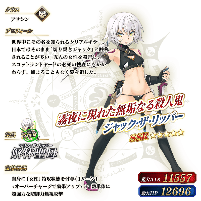 ※上記の「★5(SSR)ジャック・ザ・リッパー」のイラストは霊基再臨第2段階のものです。