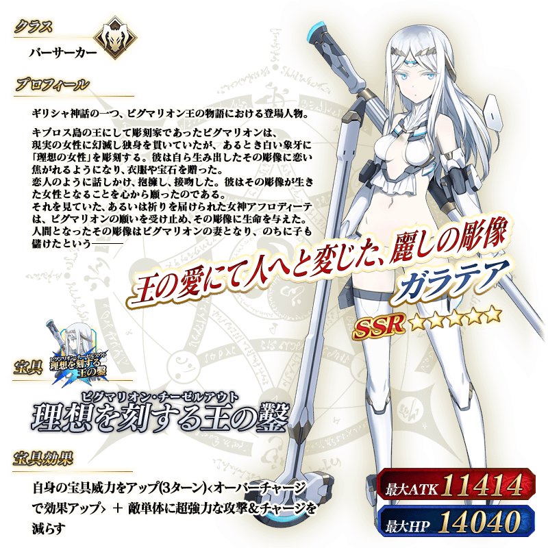 ※上記の「★5(SSR)ガラテア」のイラストは霊基再臨第2段階のものです。