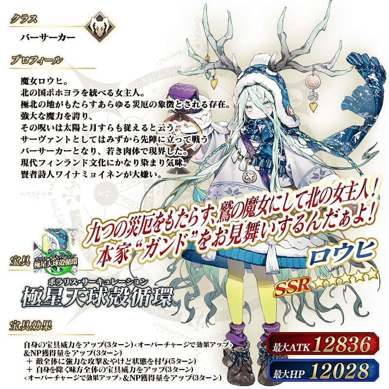 ※上記の「★5(SSR)ロウヒ」のイラストは霊基再臨第2段階のものです。