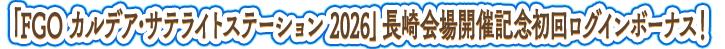 下記の期間中、「FGO カルデア・サテライトステーション 2026」長崎会場開催を記念して、「FGO カルデア・サテライトステーション 2026」長崎会場開催直前ログインボーナスを実施いたします!